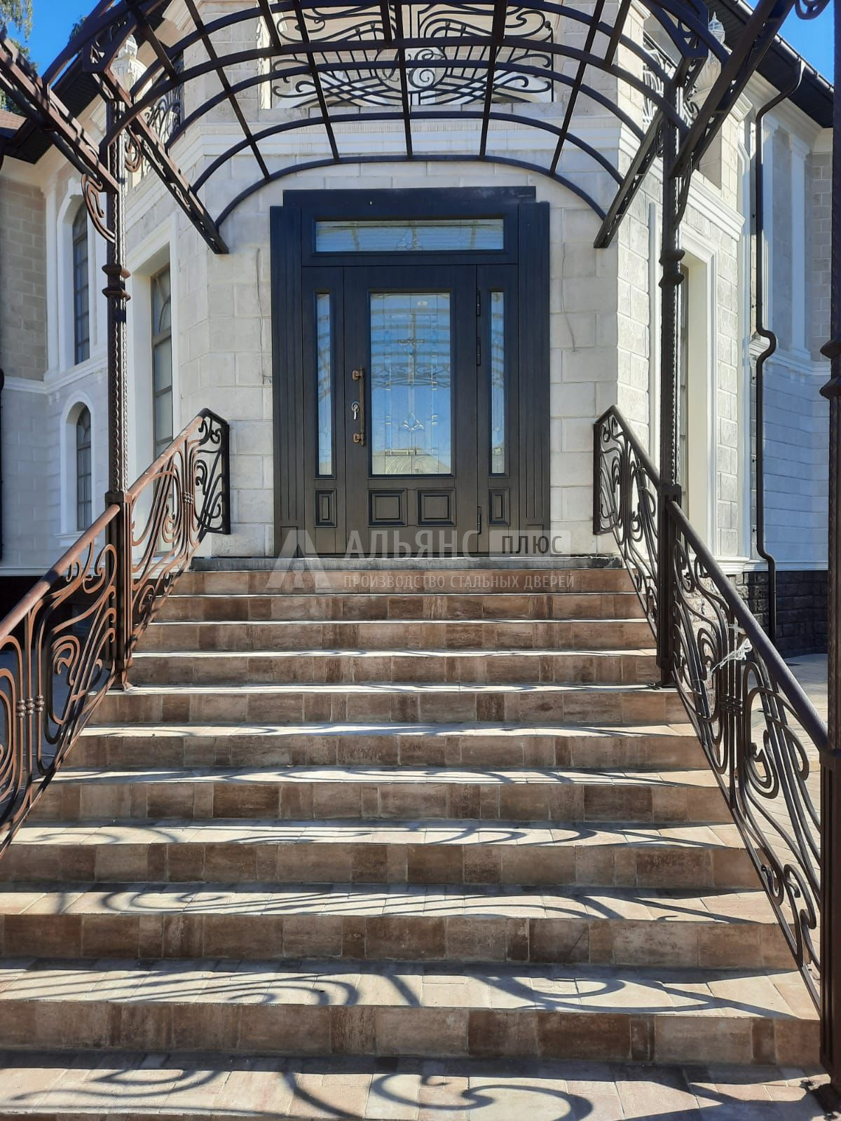Если нужен монолитный образ, используйте панорамную фрамугу с безопасным стеклом и скрытой перемычкой — визуально дверь кажется выше при сохранении устойчивости. Для северных экспозиций полезны тамбур, тёплый порог и навес: это снижает осадки и продувание, продлевая ресурс отделки.
